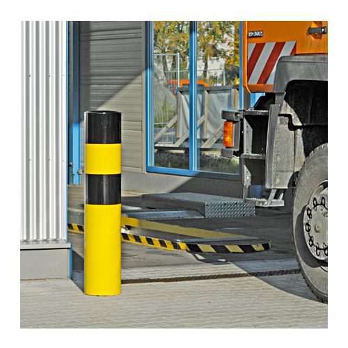 Metāla aizsargstabs, karsti cinkots ar plastmasas pārklājumu – dzeltens ar melnu. Izmēri: diametrs 273mm, augstums 1200mm +400mm betonējams, kopējais augstums 1600mm, sieniņu biezums 5mm. Svars: 53kg. Betonējams. Pildāms ar smiltīm. Par atsevišķu samaksu stabus varat pasūtīt ar noņemamu vāku.