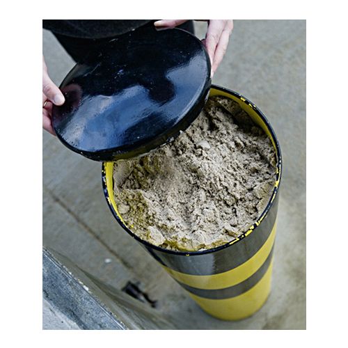 Metāla aizsargstabs, karsti cinkots ar plastmasas pārklājumu – dzeltens ar melnu. Izmēri: diametrs 273mm, augstums 1200mm, kopējais augstums 1600mm, sieniņu biezums 5mm. Svars: 51kg. Stiprināšana pie pamatnes ar 4 skrūvēm (nav iekļautas komplektā!), pamatnes izmēri 350x350x15mm. Pildāms ar smiltīm. Ar noņemamu vāku.