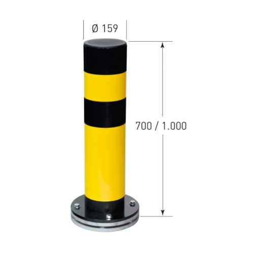 Metāla aizsargstabs (rotējošs), krāsots dzeltenmelns, d=159mm, h=1000mm (stiprināms ar skrūvēm) [MO]