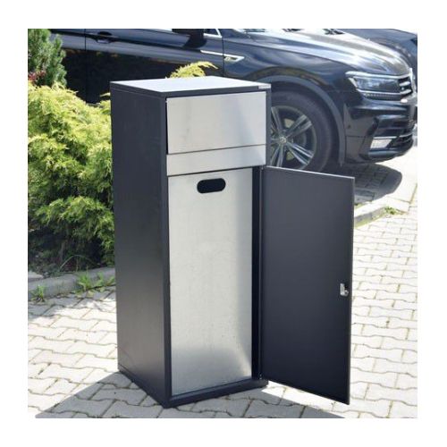 Metāla atkritumu tvertne ar nerūsējošā tērauda atloku. Tilpums: 80l. Izmēri: platums 390mm, dziļums 380mm, augstums 1040mm. Iekšējā groza izmēri: 295x350x780mm. Izgatavota no 1mm tērauda lokšņu materiāla. Viegla atkritumu iztukšošana (no sāna). Cinkota un krāsota RAL tonī (pieejamie toņi: melna RAL 9005; grafīta pelēka RAL 7021; sudraba pelēka RAL 9006; pelēka RAL 9007; brūna RAL 8011; dzeltena RAL 1023; zaļa RAL 6018; sarkana RAL 3002; oranža RAL 2000). Pieejams arī nerūsējošā tērauda variants. Piemērota parkos, skvēros, māju pagalmos, autobusu pieturās, gājēju celiņu malās u.c.