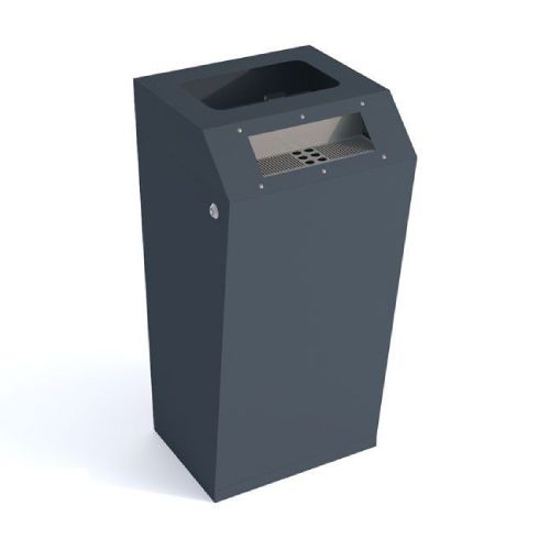 Metāla atkritumu tvertne ar pelnu trauku. Tilpums: 40l. Izmēri: platums 430mm, dziļums 440mm, augstums 950mm. Izgatavota no 1mm tērauda lokšņu materiāla. Viegla atkritumu iztukšošana (no augšas, atverot vāku). Cinkota un krāsota RAL tonī (pieejamie toņi: melna RAL 9005; grafīta pelēka RAL 7021; sudraba pelēka RAL 9006; pelēka RAL 9007; brūna RAL 8011; dzeltena RAL 1023; zaļa RAL 6018; sarkana RAL 3002; oranža RAL 2000). Pieejams arī nerūsējošā tērauda variants. Piemērota parkos, skvēros, māju pagalmos, autobusu pieturās, gājēju celiņu malās u.c.