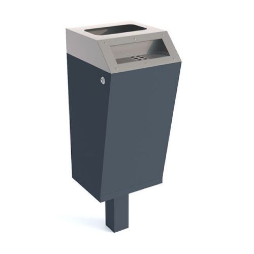 Metāla atkritumu tvertne ar pelnu trauku. Betonējama pamatnē. Tilpums: 40l. Izmēri: platums 430mm, dziļums 440mm, augstums 1100mm. Izgatavota no 1mm tērauda lokšņu materiāla. Viegla atkritumu iztukšošana (no augšas, atverot vāku). Cinkota un krāsota RAL tonī (pieejamie toņi: melna RAL 9005; grafīta pelēka RAL 7021; sudraba pelēka RAL 9006; pelēka RAL 9007; brūna RAL 8011; dzeltena RAL 1023; zaļa RAL 6018; sarkana RAL 3002; oranža RAL 2000). Pieejams arī nerūsējošā tērauda variants. Piemērota parkos, skvēros, māju pagalmos, autobusu pieturās, gājēju celiņu malās u.c.
