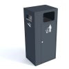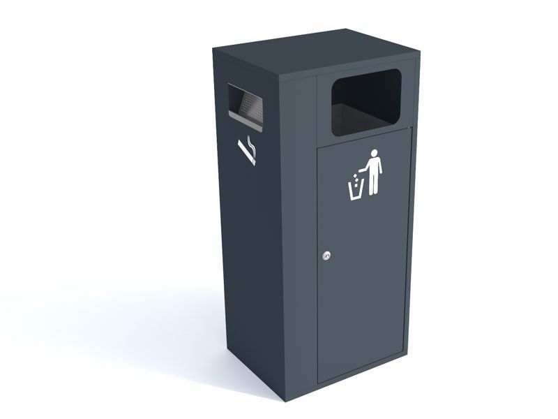 Metāla atkritumu tvertne ar pelnu trauku (pelnu trauks no sāniem). Tilpums: 40l. Izmēri: platums 480mm, dziļums 380mm, augstums 1050mm. Izgatavota no 1mm tērauda lokšņu materiāla. Viegla atkritumu iztukšošana (no sāna). Cinkota un krāsota RAL tonī (pieejamie toņi: melna RAL 9005; grafīta pelēka RAL 7021; sudraba pelēka RAL 9006; pelēka RAL 9007; brūna RAL 8011; dzeltena RAL 1023; zaļa RAL 6018; sarkana RAL 3002; oranža RAL 2000). Pieejams arī nerūsējošā tērauda variants. Piemērota parkos, skvēros, māju pagalmos, autobusu pieturās, gājēju celiņu malās u.c.