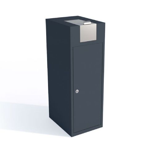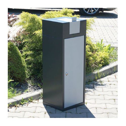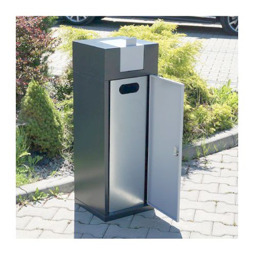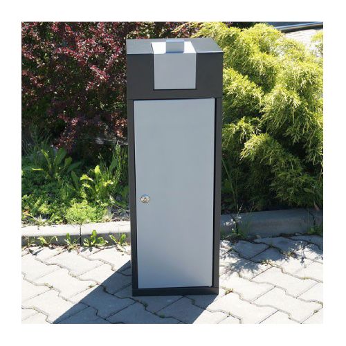 Metāla atkritumu tvertne. Tilpums: 40l. Cinkota un krāsota tonī RAL 7021. Iespējams arī nerūsējošā tērauda variants. Izmēri: platums 310mm, dziļums 300mm, augstums 900mm. Izgatavota no 1mm tērauda lokšņu materiāla. Viegla atkritumu iztukšošana (no sāna). Piemērota parkos, skvēros, māju pagalmos, autobusu pieturās, gājēju celiņu malās u.c.