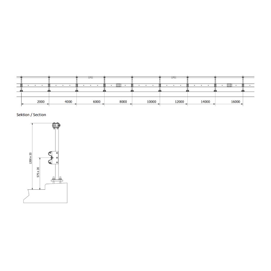 Drošības barjera Nordic SF H2 High (H2W2) ar SF profilu kā aizsargu. Augšējais aizsargs 120x80mm, stabs 55x55mm. Atbilst EN1317-5:2007+A2:2012. Barjeras ierobežošanas līmenis H2, darba platums (klase) W2, ietekmes smaguma pakāpe B, transportlīdzekļa ielaušanās (klase) V13, izturība pret sniega tīrīšanu: 4. Parametri: stabs ik pēc 2m, darba platums 0.8m, dinamiskā izplešanās 0.5-0.6m, konstrukcijas platums 0.2m, konstrukcijas augstums 1.2/1.4m, izturība – ar karsti cinkotu pārklājumu (Fe/Zn 115). Pieejamas dažādas uzstādīšanas iespējas un risinājumi malu sijām, cokoliem, ceļu/tiltu virsmas plaknē, kā arī betona vai tērauda pamatiem (izmantošanai zemē).