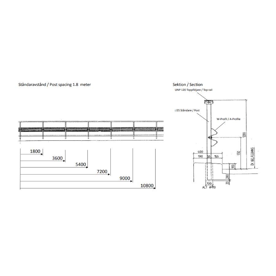 Metāla drošības barjera Nordic W H2 (H2W3) [NR]