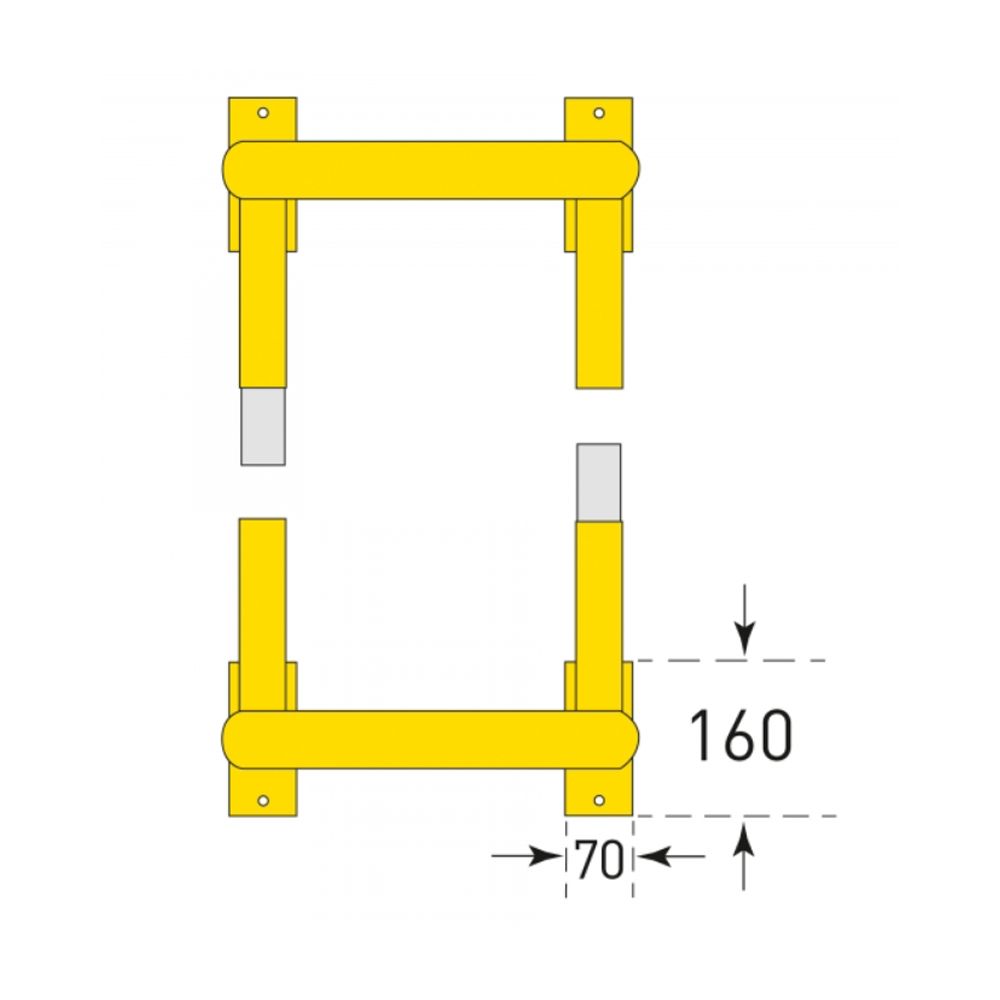Metāla kvadrātveida aizsargbarjera, dzeltena ar melnu, 600x720mm (d=69mm/48mm) [MO]