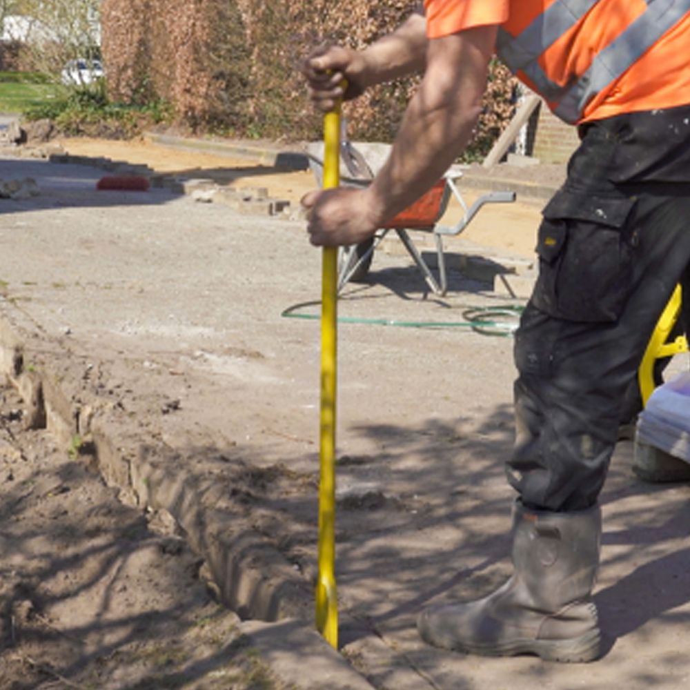 Metāla lauznis. Garums: 1200mm. Svars: 6kg. Rūdīta, kalta pāreja no apaļas uz kvadrātu. Pulverkrāsots dzeltens (RAL 1021). Garantija: 7 gadi, izņemot dilstošās daļas. Pakā: 34ab. (cena norādīta par gab.).