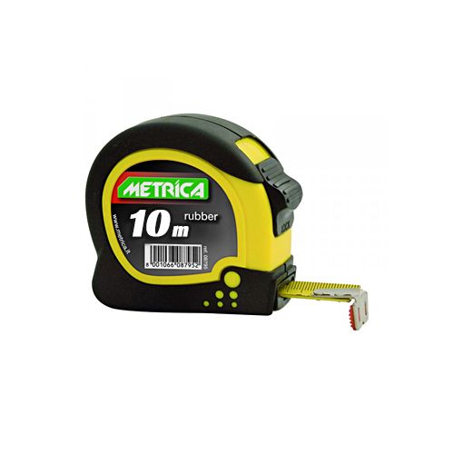 Metāla mērlenta ar pretnodiluma neilona pārklājumu. Garums: 10m. Lentas platums: 25mm. Mērlentas korpusa garums 85mm. Pretnodiluma neilona pārklājums. Automātiska pārtīšana. Lentas nostiprināšanas slēdzis. Ar klipsi. Gumijas klipša pamatne, viegla aizāķēšana arī aiz apaļām virsmām.