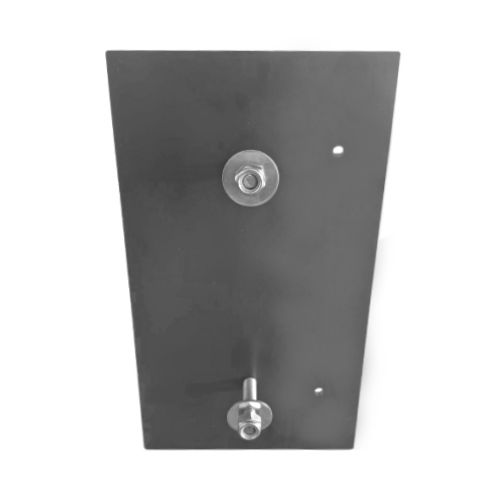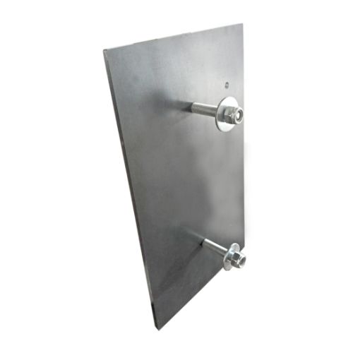 Metāla plāksne (stiprinājums) gumijas aizsargam. 2 caurumi plāksnes piestiprināšanai. Izmērs: garums 400mm, platums 160mm, biezums 6mm. Komplektā ietilpst: plāksne ar piemetinātiem vītņstieņiem, paplāksnēm un uzgriežņu skrūvēm.
