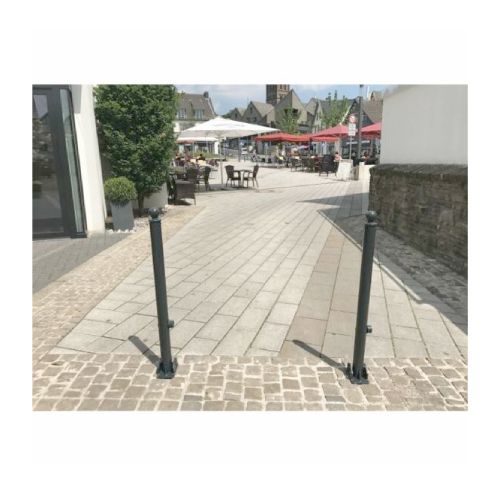 Metāla stabiņš ORNA 466. Nolokāms, stiprināms pie pamatnes. Ar trijstūra slēdzeni. Karsti cinkots un krāsots antracīta pelēks (RAL 7016). Izmēri: augstums 950mm, stabiņa d=60mm, pamatnes izmērs 100x150mm. Svars: 7kg.
