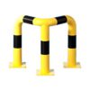 Metāla stūru aizsargbarjera – dzeltena ar melnām brīdinošām joslām. Cinkota un krāsota. Izmēri: caurules d=60mm, caurules biezums 2mm, platums 640x640mm, augstums 600mm, pamatnes izmērs 150x150x6mm. Stiprināšana pie zemes ar 12 skrūvēm d=9mm (nav iekļautas komplektā!). Piemērota izmantošanai iekštelpās un ārā.
