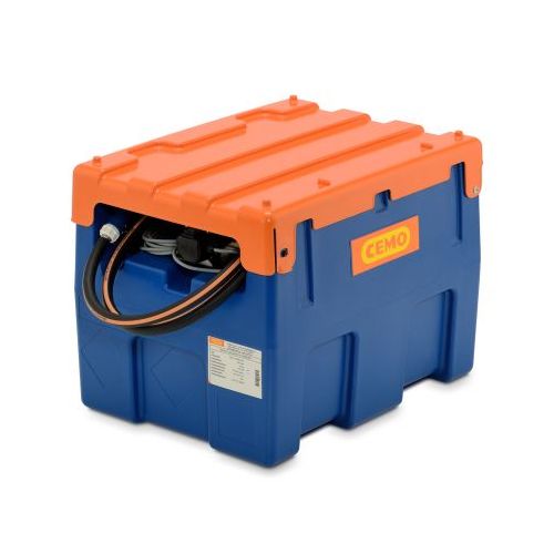 Mobilā AdBlue® uzpildes un uzglabāšanas tvertne BLUE-MOBIL EASY ar 12l elektrisko sūkni un automātisko pistoli. Izgatavots no polietilēna (viensienu). Ar veramu tvertnes vāku. Elektrisks, pašsūcošs sūknis, 30l/min. 4m uzpildes šļūtene (d=19mm), 4m vads ar “krokodila” spailēm. Tilpums: 200l. Siksnu vadotnes transportēšanas drošībai. Integrēti pārnēsāšanas rokturi un ejas iekrāvējiem. Siksnu vadotnes transportēšanas drošībai. Tvertnes izmēri: 800x620x610mm. Pieejami arī citi varianti. Transportēšanai nav nepieciešams ADR sertifikāts (nav bīstama viela). Svars: 26kg.