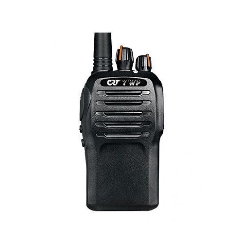 Mobilā rācija CRT 7WP. Ūdens/putekļu izturīga (IP67 klase). Piemērota izmantošanai atpūtas un sporta pasākumos, tūrismam, medībām. Kanāla solis: 12.5 kHz. Ar regulējamu trokšņu filtru. VOX brīvroku funkcija. 16 kanāli + 16 priekšiestatīti ar CTCSS/DCS kodējumu. SCRAMBLER pārraides kodēšana privātuma saglabāšanai. Akumulators: Li-ion 1600 mAh. Izmērs: 260x60x35mm (ar akumulatoru, bez antenas), antenas garums 150mm. Svars: 208g (ar akumulatoru, bez antenas). Jauda: 0.5 Watts ERP. Sakaru attālums aptuveni 5km, atkarībā no reljefa un izmantošanas vietas. Korpuss izgatavots no ABS plastikas ar alumīnija nesošo konstrukciju. LCD ekrāns ar apgaismojumu. Komplektā ar galda turētāju, akumulatoru un jostas klipsi. Darba stundas, intensīvi runājot: apmēram 8h.