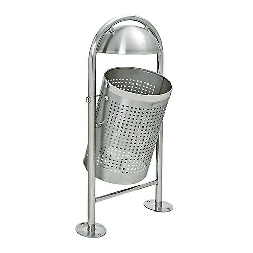 Nerūsējošā tērauda atkritumu konteiners. Izmēri: augstums 1150mm, platums 580mm, dziļums 380mm. Tilpums: 35L. Svars: 14kg. Korpuss izgatavots no perforētas tērauda plāksnes. Stiprināšana ar skrūvēm.