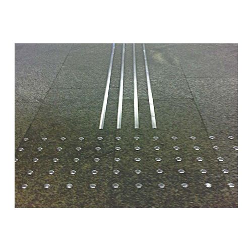 Nerūsējošā tērauda loksne. Izmēri: garums 2000mm, platums 20mm, augstums 1,5 – 5mm, montāžas vītnes d-8mm. Stiprināšana ar 7 skrūvēm. Nodrošina taustes marķējumu zonas uz virsmām, lai brīdinātu neredzīgus, vājredzīgus cilvēkus. Loksnes izmanto ielu krustojumos, dzelzceļa stacijās, pieturās, gājēju pārejās, slimnīcās, viesnīcās, tirdzniecības centros, lidostās, publiskās vietās u.c. Izgatavots no nerūsējošā tērauda. Nodilumizturīgs, aizsargāts no UV stariem, vides piesārņojuma un sāls.