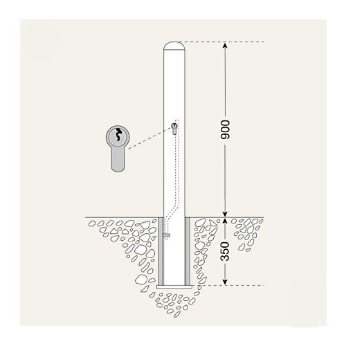 Nerūsējošā tērauda stabs BERLIN ar iekšējo atslēgu, d=108mm, h=900mm (300mm zem pamatnes)