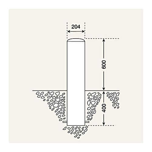 Nerūsējošā tērauda stabs BERLIN XL – betonējams, d=204mm, h=600mm (400mm zem pamatnes)