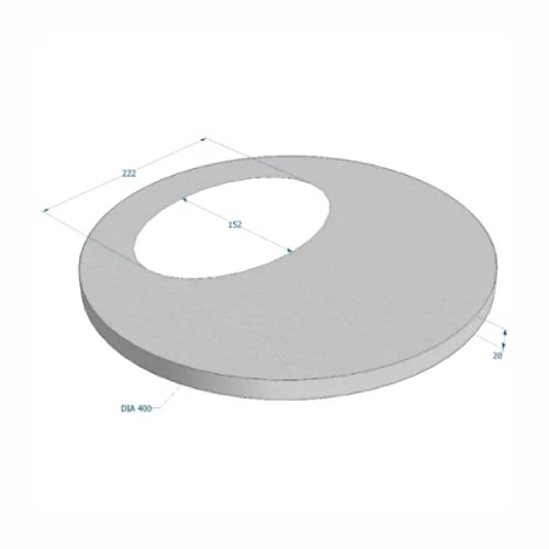 Nerūsējošā tērauda vāks ar atkritumu tvertnes atveri. Izmēri: d=400mm, h=20mm, atveres izmēri: 222x152mm. Piemērots atkritumu tvertnēm (apaļām) ar tilpumu 10l.