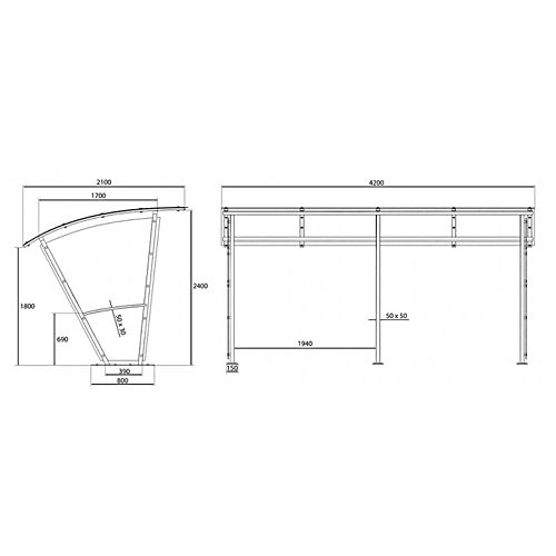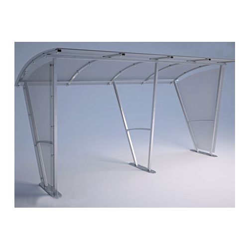 Nojume ar sānu sienām 10 velosipēdu novietošanai. Izmēri: platums 420cm, dziļums 210cm, augstums 240cm. Jumta seguma materiāls: polikarbnāts 8mm. Atbalsta struktūra: 50x50x2mm cinkota tērauda profili. Jumta struktūra: 50x30x2mm cinkota tērauda profili. Iespējams ievietot piecvietīgu velosipēdu statīvu HARRY, ADAM, ORTAL vai U-veida. Par papildus samaksu iespējams krāsot kādā no RAL krāsām.