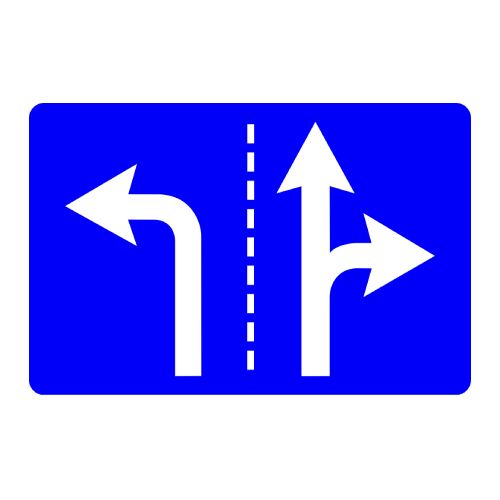 Norādījuma zīme Nr.513/Braukšanas virzieni joslās. Izmēri: 1050x700mm. 2. atstarošanas klase.