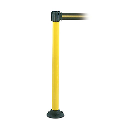 Norobežošanas lenta ar statīvu un pamatni. Lentas garums: 3m, lentas krāsas: dzeltenmelna. Statīva krāsa: dzeltena, statīva augstums 895mm, materiāls: krāsots, lakots alumīnijs d=60mm, statīva pamatnes d=150mm. Stiprināšana pie pamatne sar 3 skrūvēm. Svars: 2,3kg.