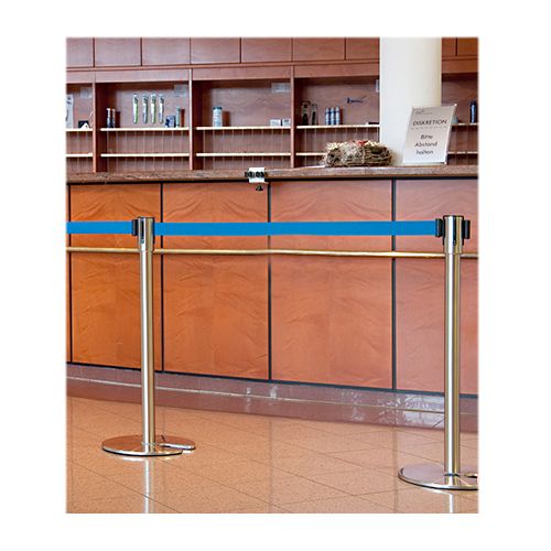 Norobežošanas lenta ar nerūsējošā tērauda statīvu un pamatni. Statīva augstums: 890mm, statīva d=63mm, statīva pamatnes d=350mm. Lentas krāsa: melna, lentas garums: 2m. Kopējais svars: 9,5kg. Piemērota gājēju un rindu plūsmu organizēšanai, telpu zonēšanai, izstāžu norobežošanai. Pielietojama lidostās, bankās, viesnīcās, izstāžu zālēs, muzejos, tirdzniecības vietās, ofisos u.c. sabiedriskās vietās.