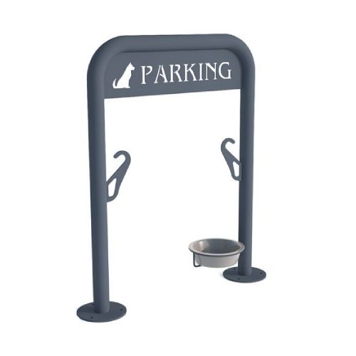 Novietne/statīvs suņiem NS8 ar dzirdinātavu. Izmēri: augstums 800mm, platums 800mm, caurules d=48.3mm. Materiāls: cinkots tērauds (iespējams arī izgatavot no cinkota un krāsota tērauda vai nerūsējošā tērauda par papildus samaksu). Par papildus samaksu iespējama lāzergriešana ar sev vēlamo logo/tekstu. Novietne suņiem ir drošs veids, kā uz laiku atstāt mājdzīvnieku bez uzraudzības. Montāža ar skrūvēm pie pamatnes.