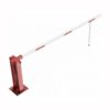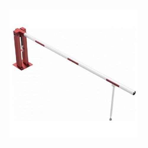 Paceļama barjera ar pneimatisko atsperi un eņģu atbalsta kāju. Atvēršana/aizslēgšana ar euro-profila cilindra slēdzeni (pieejama arī ar piekaramo atslēgu, trijstūrveida slēdzeni vai trijstūrveida slēdzenes mehānismu/euro-profila cilindra slēdzeni). Stiprināma pie pamatnes ar skrūvēm (iespējams arī iebetonēt – papildus nepieciešams betonējams enkurs: 360x360x8mm). Ieteicamie betona pamata izmēri galvenajam vertikālajam stabam 550x550x900mm. Izmēri: kopējais platums = 3000mm + 180mm, vidējais (brīvais) platums 3000mm, vertikālais galvenais stabs no 120x80mm tērauda caurules, pamatplāksne galvenajam stabam 360x360x8mm (karsti cinkots un krāsots sarkans), eņģu atbalsta kāja no alumīnija caurules, horizontālā barjera (alumīnija caurule ar biezām sieniņām) d=80mm, balta ar sarkanām atstarojošām joslām, augstums virs zemes 950mm. Bloķēšanas mehānisms: pie atbalsta staba, horizontālo stabu var fiksēt atvērtā un slēgtā stāvoklī. Iespējams papildus iegādāties galvenās atbalsta kājas enkurus montāžai betonā ar skrūvēm un metāla trosi, kā arī eiro profila cilindra slēdzene ar piespiedu aizvēršanu. Svars: 46.5kg.