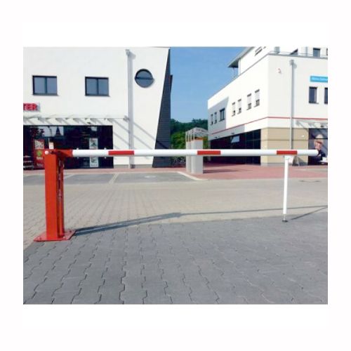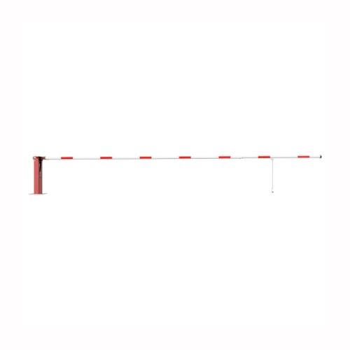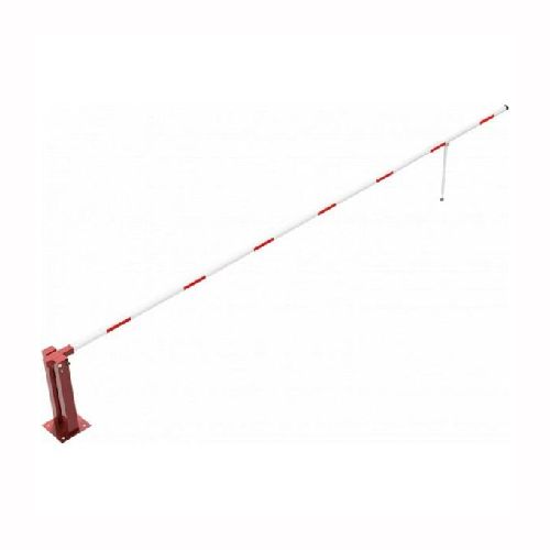 Paceļama barjera ar pneimatisko atsperi un eņģu atbalsta kāju. Atvēršana/aizslēgšana ar euro-profila cilindra slēdzeni (pieejama arī ar piekaramo atslēgu, trijstūrveida slēdzeni vai trijstūrveida slēdzenes mehānismu/euro-profila cilindra slēdzeni). Stiprināma pie pamatnes ar skrūvēm (iespējams arī iebetonēt – papildus nepieciešams betonējams enkurs: 360x360x8mm). Ieteicamie betona pamata izmēri galvenajam vertikālajam stabam 550x550x900mm. Izmēri: kopējais platums = 7000mm + 180mm, vidējais (brīvais) platums 7000mm, vertikālais galvenais stabs no 120x80mm tērauda caurules, pamatplāksne galvenajam stabam 360x360x8mm (karsti cinkots un krāsots sarkans), eņģu atbalsta kāja no alumīnija caurules, horizontālā barjera (alumīnija caurule ar biezām sieniņām) d=80mm, balta ar sarkanām atstarojošām joslām, augstums virs zemes 950mm. Bloķēšanas mehānisms: pie atbalsta staba, horizontālo stabu var fiksēt atvērtā un slēgtā stāvoklī. Iespējams papildus iegādāties galvenās atbalsta kājas enkurus montāžai betonā ar skrūvēm un metāla trosi, kā arī eiro profila cilindra slēdzene ar piespiedu aizvēršanu. Svars: 56.5kg.