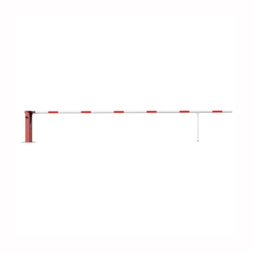 Paceļama barjera ar pneimatisko atsperi un eņģu atbalsta kāju. Ar trīsstūrveida slēdzeni un Euro profila cilindra slēdzeni pie galvenā balsta. Pieejama arī ar piekaramo atslēgu, trijstūrveida slēdzeni vai trijstūrveida slēdzenes mehānismu/euro-profila cilindra slēdzeni). Stiprināma pie pamatnes ar skrūvēm (iespējams arī iebetonēt – papildus nepieciešams betonējams enkurs: 360x360x8mm). Ieteicamie betona pamata izmēri galvenajam vertikālajam stabam 550x550x900mm. Izmēri: kopējais platums = 6000mm + 180mm, vidējais (brīvais) platums 6000mm, vertikālais galvenais stabs no 120x80mm tērauda caurules, pamatplāksne galvenajam stabam 360x360x8mm (karsti cinkots un krāsots sarkans), eņģu atbalsta kāja no alumīnija caurules, horizontālā barjera (alumīnija caurule ar biezām sieniņām) d=80mm, balta ar sarkanām atstarojošām joslām, augstums virs zemes 950mm. Bloķēšanas mehānisms: pie atbalsta staba, horizontālo stabu var fiksēt atvērtā un slēgtā stāvoklī. Iespējams papildus iegādāties galvenās atbalsta kājas enkurus montāžai betonā ar skrūvēm un metāla trosi, kā arī eiro profila cilindra slēdzene ar piespiedu aizvēršanu. Svars: 54.5kg.