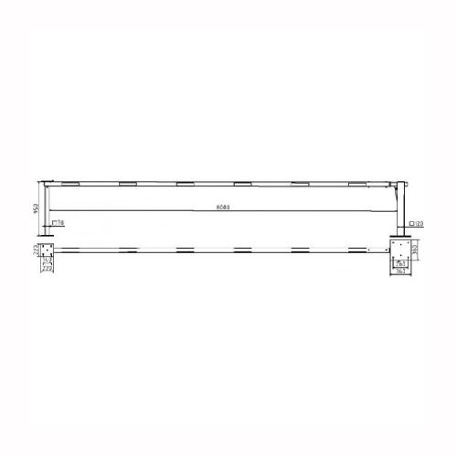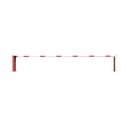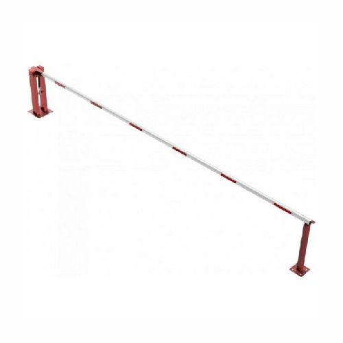Paceļama barjera ar pneimatisko atsperi un fiksētu atbalsta stabu. Atvēršana/aizslēgšana ar piekaramo atslēgu (pieejama arī ar trijstūrveida slēdzeni vai euro-profila cilindra slēdzeni). Stiprināma pie pamatnes ar skrūvēm (iespējams arī iebetonēt – papildus nepieciešams betonējamie enkuri: 360x360x8mm un 220x220x8mm). Ieteicamie betona pamata izmēri galvenajam vertikālajam stabam 550x550x900mm; atbalsta stabam – 400x400x900mm. Izmēri: kopējais platums = 6000mm + 180mm, vidējais (brīvais) platums 6000mm, vertikālais galvenais stabs no 120x80mm tērauda caurules (karsti cinkots un krāsots sarkans), atbalsta stabs no tērauda caurules 70x70mm ar pamatnes plāksni 220x220x8mm, horizontālā barjera (alumīnija caurule ar biezām sieniņām) d=80mm, balta ar sarkanām atstarojošām joslām, augstums virs zemes 950mm. Bloķēšanas mehānisms: pie atbalsta staba, horizontālo stabu var fiksēt atvērtā un slēgtā stāvoklī. Iespējams papildus iegādāties atbalsta kāju enkurus montāžai betonā ar skrūvēm un metāla trosi. Svars: 54kg.