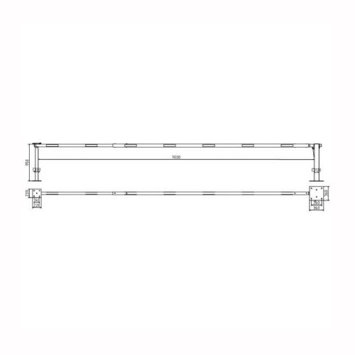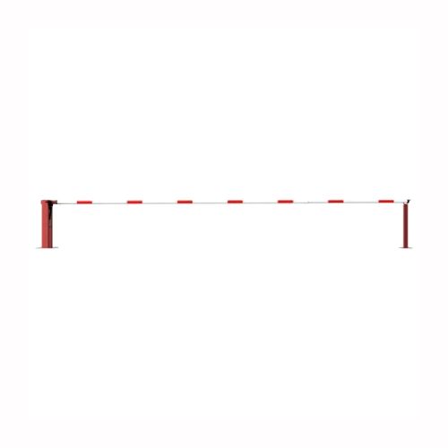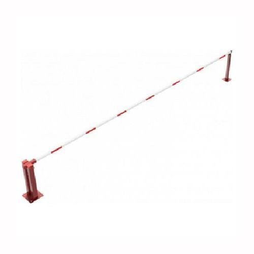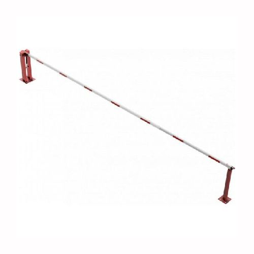 Paceļama barjera ar pneimatisko atsperi un fiksētu atbalsta stabu. Atvēršana/aizslēgšana ar piekaramo atslēgu (pieejama arī ar trijstūrveida slēdzeni vai euro-profila cilindra slēdzeni). Stiprināma pie pamatnes ar skrūvēm (iespējams arī iebetonēt – papildus nepieciešams betonējamie enkuri: 360x360x8mm un 220x220x8mm). Ieteicamie betona pamata izmēri galvenajam vertikālajam stabam 550x550x900mm; atbalsta stabam – 400x400x900mm. Izmēri: kopējais platums = 7000mm + 180mm, vidējais (brīvais) platums 7000mm, vertikālais galvenais stabs no 120x80mm tērauda caurules (karsti cinkots un krāsots sarkans), atbalsta stabs no tērauda caurules 70x70mm ar pamatnes plāksni 220x220x8mm, horizontālā barjera (alumīnija caurule ar biezām sieniņām) d=80mm, balta ar sarkanām atstarojošām joslām, augstums virs zemes 950mm. Bloķēšanas mehānisms: pie atbalsta staba, horizontālo stabu var fiksēt atvērtā un slēgtā stāvoklī. Iespējams papildus iegādāties atbalsta kāju enkurus montāžai betonā ar skrūvēm un metāla trosi. Svars: 60kg.