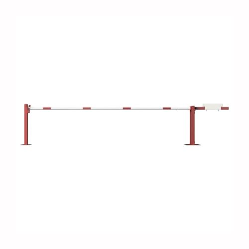 Paceļama barjera ar pretsvaru, ar atbalsta stabu. Atvēršana/aizslēgšana ar euro-profila cilindra slēdzeni (pieejama arī ar piekaramo atslēgu vai trijstūrveida slēdzeni). Stiprināma pie pamatnes ar skrūvēm (iespējams arī iebetonēt – papildus nepieciešama betonējamais enkurs abiem balstiem 360x360x8mm). Ieteicamie betona pamata izmēri galvenajam vertikālajam stabam 550x550x900mm; atbalsta stabam – 400x400x900mm. Izmēri: kopējais platums = 4000mm + 900mm, vidējais (brīvais) platums 4000mm, vertikālais stabs (karsti cinkots un krāsots sarkans), atbalsta stabs no tērauda caurules 70x70mm ar pamatnes plāksni 220x220x8mm, horizontālā barjera (alumīnija caurule ar biezām sieniņām) d=80mm, balta ar sarkanām joslām, augstums virs zemes 950mm. Bloķēšanas mehānisms: pie atbalsta staba, var fiksēt ar galveno atbalsta tapu, kad barjera ir atvērta. Iespējams papildus iegādāties atbalsta kāju enkurus montāžai betonā ar skrūvēm un metāla trosi. Svars: 76kg.