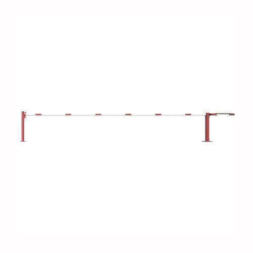 Paceļama barjera ar pretsvaru, ar atbalsta stabu. Atvēršana/aizslēgšana ar euro-profila cilindra slēdzeni (pieejama arī ar piekaramo atslēgu vai trijstūrveida slēdzeni). Stiprināma pie pamatnes ar skrūvēm (iespējams arī iebetonēt – papildus nepieciešama betonējamais enkurs abiem balstiem 360x360x8mm). Ieteicamie betona pamata izmēri galvenajam vertikālajam stabam 550x550x900mm; atbalsta stabam – 400x400x900mm. Izmēri: kopējais platums = 6000mm + 900mm, vidējais (brīvais) platums 6000mm, vertikālais stabs (karsti cinkots un krāsots sarkans), atbalsta stabs no tērauda caurules 70x70mm ar pamatnes plāksni 220x220x8mm, horizontālā barjera (alumīnija caurule ar biezām sieniņām) d=80mm, balta ar sarkanām joslām, augstums virs zemes 950mm. Bloķēšanas mehānisms: pie atbalsta staba, var fiksēt ar galveno atbalsta tapu, kad barjera ir atvērta. Iespējams papildus iegādāties atbalsta kāju enkurus montāžai betonā ar skrūvēm un metāla trosi. Svars: 124.50kg.