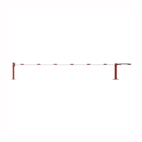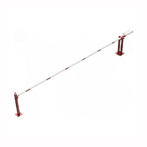 Paceļama barjera ar pretsvaru, ar atbalsta stabu. Atvēršana/aizslēgšana ar trijstūrveida slēdzeni (pieejama arī ar piekaramo atslēgu vai euro-profila cilindra slēdzeni). Stiprināma pie pamatnes ar skrūvēm (iespējams arī iebetonēt – papildus nepieciešama betonējamais enkurs abiem balstiem 360x360x8mm). Ieteicamie betona pamata izmēri galvenajam vertikālajam stabam 550x550x900mm; atbalsta stabam – 400x400x900mm. Izmēri: kopējais platums = 6000mm + 900mm, vidējais (brīvais) platums 6000mm, vertikālais stabs (karsti cinkots un krāsots sarkans), atbalsta stabs no tērauda caurules 70x70mm ar pamatnes plāksni 220x220x8mm, horizontālā barjera (alumīnija caurule ar biezām sieniņām) d=80mm, balta ar sarkanām joslām, augstums virs zemes 950mm. Bloķēšanas mehānisms: pie atbalsta staba, var fiksēt ar galveno atbalsta tapu, kad barjera ir atvērta. Iespējams papildus iegādāties atbalsta kāju enkurus montāžai betonā ar skrūvēm un metāla trosi. Svars: 124.50kg.