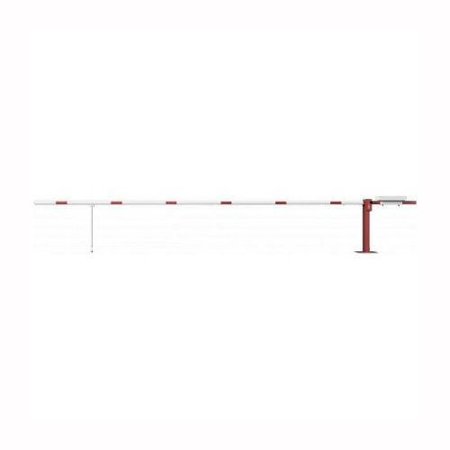 Paceļama barjera ar pretsvaru, ar atbalsta kāju. Atvēršana/aizslēgšana ar euro-profila cilindra slēdzeni (pieejama arī ar piekaramo atslēgu vai trijstūrveida slēdzeni). Stiprināma pie pamatnes ar skrūvēm (iespējams arī iebetonēt – papildus nepieciešama betonējamais enkurs balstam 360x360x8mm). Ieteicamie betona pamata izmēri galvenajam vertikālajam stabam 550x550x900mm. Izmēri: kopējais platums = 6000mm + 900mm, vidējais (brīvais) platums 6000mm, vertikālais stabs (karsti cinkots un krāsots sarkans), atbalsta stabs no alumīnija, horizontālā barjera (alumīnija caurule ar biezām sieniņām) d=80mm, balta ar sarkanām joslām, augstums virs zemes 950mm. Bloķēšanas mehānisms: pie galvenā atbalsta staba bloķēšanas tapa, horizontālās barjeras nostiprināšanai atvērtā vai slēgta pozīcija. Iespējams papildus iegādāties atbalsta kāju enkuru montāžai betonā un metāla trosi. Svars: 117kg.