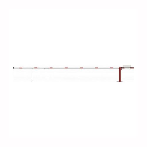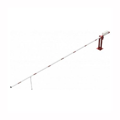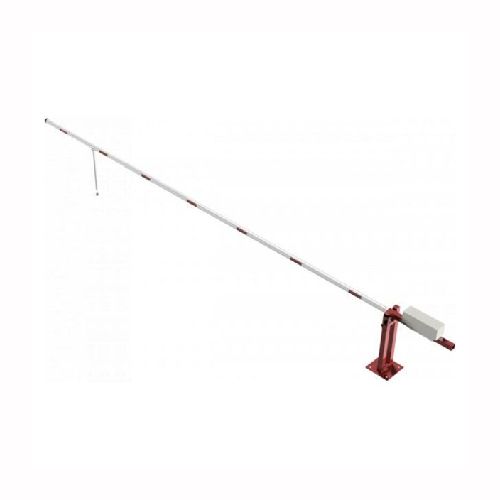 Paceļama barjera ar pretsvaru, ar atbalsta kāju. Atvēršana/aizslēgšana ar trijstūrveida slēdzeni (pieejama arī ar piekaramo atslēgu vai euro-profila cilindra slēdzeni). Stiprināma pie pamatnes ar skrūvēm (iespējams arī iebetonēt – papildus nepieciešama betonējamais enkurs balstam 360x360x8mm). Ieteicamie betona pamata izmēri galvenajam vertikālajam stabam 550x550x900mm. Izmēri: kopējais platums = 7000mm + 900mm, vidējais (brīvais) platums 7000mm, vertikālais stabs (karsti cinkots un krāsots sarkans), atbalsta stabs no alumīnija, horizontālā barjera (alumīnija caurule ar biezām sieniņām) d=80mm, balta ar sarkanām joslām, augstums virs zemes 950mm. Bloķēšanas mehānisms: pie galvenā atbalsta staba bloķēšanas tapa, horizontālās barjeras nostiprināšanai atvērtā vai slēgta pozīcija. Iespējams papildus iegādāties atbalsta kāju enkuru montāžai betonā un metāla trosi. Svars: 140kg.