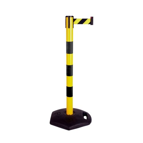 Plastmasas statīvs (dzeltens ar melnām joslām) ar izvelkamu lentu un gumijas pamatni (h=1010mm), 3.6m lenta [SOR]