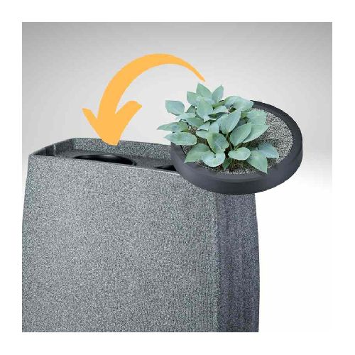 Tvertne lietus ūdens savākšanai un uzkrāšanai BOX (ar izvelkamu puķu podu). Nav iekļauts krāns un novirzītājs/ūdens savācējs – tas iegādājams atsevišķi. Tilpums: 270L. Krāsa: tumšs granīts. Izgatavota no UV izturīga polipropilēna. Izmēri: platums 765mm, dziļums 380mm, augstums 1090mm. Caur notekcaurulēm pa novirzītāju lietus ūdens tiek novadīts uz tvertni. Svars: 22kg.