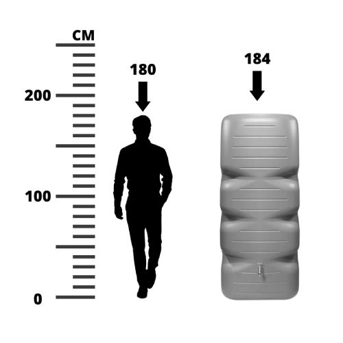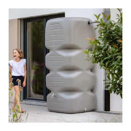 Tvertne lietus ūdens savākšanai un uzkrāšanai CUBUS ar iekļautu krānu (3/4 vītne) un ūdens savācēju/novirzītāju. Tvertnē integrēti 19mm (3/4 collu) vītņoti savienojumi. Aprīkota ar augšējo pārbaudes vāku. Tilpums: 1000L. Izgatavota no 100% pārstrādātas plastmasas. Pieejamās krāsas: gaiši pelēka vai zaļa. Izmēri: platums 800mm, dziļums 800mm, augstums 1840mm. Caur notekcaurulēm lietus ūdens tiek novadīts uz tvertni. Svars: 26kg.