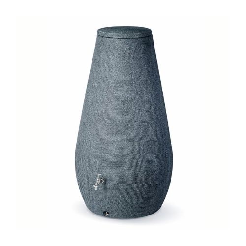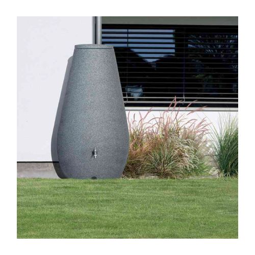 Tvertne lietus ūdens uzkrāšanai DROP. Nav iekļauts krāns un ūdens savācējs/novirzītājs – tas iegādājams atsevišķi. Tilpums: 410L. Izgatavota no UV izturīga polipropilēna. Krāsa: tumšs granīts. Izmēri: platums 760mm, dziļums 760mm, augstums 1415mm. Caur notekcaurulēm pa novirzītāju lietus ūdens tiek novadīts uz tvertni. Svars: 23kg.