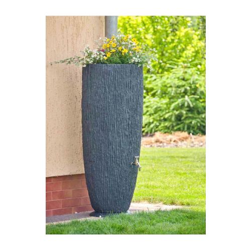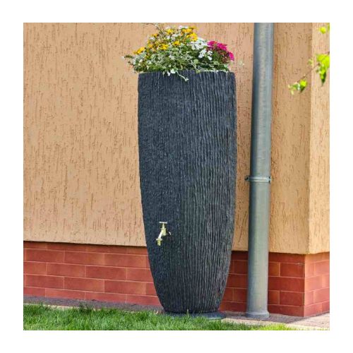 Tvertne lietus ūdens uzkrāšanai SAM ar puķu podu. Ergonomiska un moderna forma. Krāns (1/2 colla) un ūdens savācējs/novirzītājs nav iekļauts komplektā. Iekļauts statīvs/pamatne. Tilpums: 120L. Izgatavota no izturīga polipropilēna. Izmēri: platums 480mm, dziļums 480mm, augstums 1140mm. Caur notekcaurulēm pa ūdens savācēju/novirzītāju lietus ūdens tiek novadīts uz tvertni. Pieejamās krāsas: tumšs granīts, melna, gaiši pelēka, krēmkrāsas. Svars: 8kg.