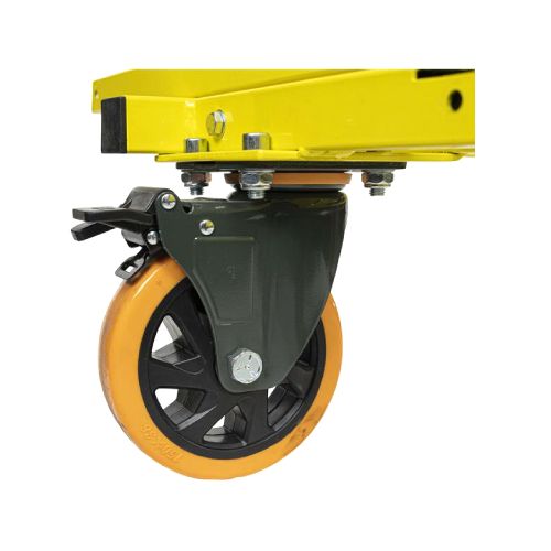 Plātņu pārvietošanas ratiņi uz 4 riteņiem. Maksimālā kravnesība: 900kg. Aprīkoti ar 2 fiksētiem riteņiem un 2 bremzējamiem (grozāmiem) riteņiem. Aizmugurējā daļa salokāma. Ratiņu izmērs: 960x600x1040mm. Riteņu diametrs d=160mm. Garantija: 7 gadi (izņemot dilstošās daļas). Svars: 27kg.