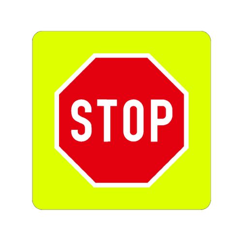 Priekšrocības zīme Nr.207F/Neapstājoties tālāk braukt aizliegts, 800x800mm ar fluorescējošu rāmi, 2. atst. klase