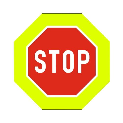 Priekšrocības zīme Nr.207F/Neapstājoties tālāk braukt aizliegts, 940x940mm ar fluorescējošu rāmi, 3. atst. klase