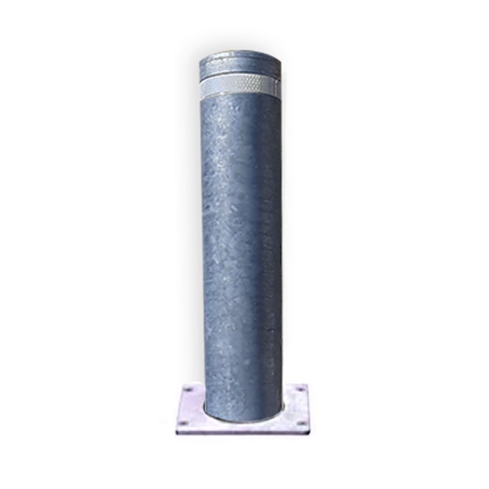 Pusautomātisks paceļams stabs. Cinkots. Izmēri: diametrs 114mm, augstums 500mm, biezums 4mm. Ar atstarojošu lentu augšpusē.