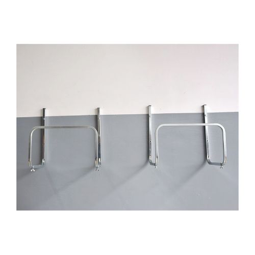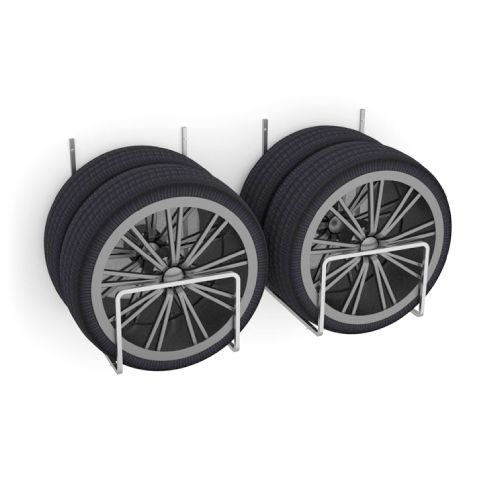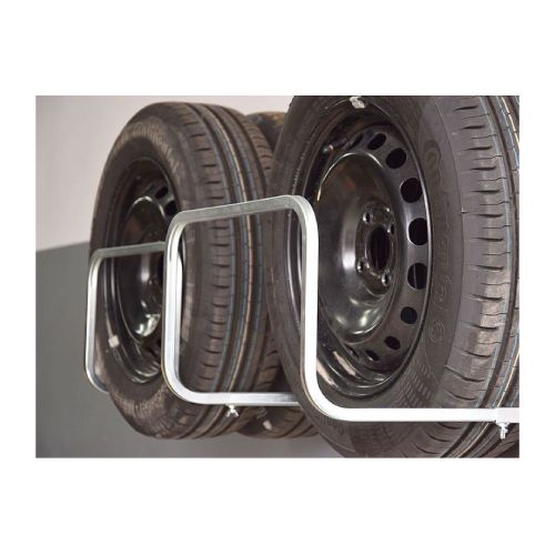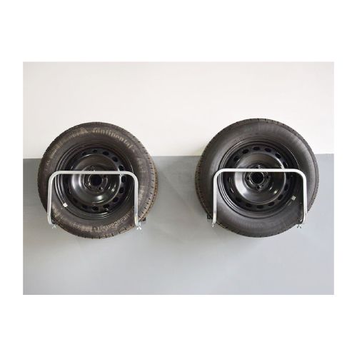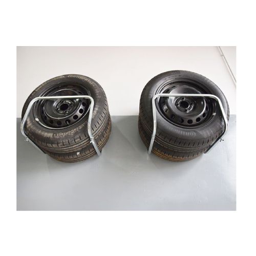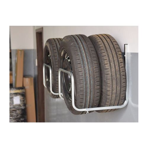 Riepu statīvs stiprināšanai pie sienas. Piemērots 4 (2x2gab.) automašīnu riepu uzglabāšanai (max. 22 collas jeb 4x235mm). Var regulēt atstarpi staro svirām atkarībā no riepas izmēra. Statīvus var novietot neatkarīgi vienu no otra. Izmēri: garums katram statīvam 430mm, augstums aizmugurē 460mm, augstums priekšpusē 360mm, horizontālais profils 20x20x1.5mm, dziļums 340-550mm, vertikālais profils 15x15x1.5mm. Celtspēja: 2x80kg. Materiāls: cinkots tērauds. Montāžas skrūves iekļautas komplektā! Ideāli piemērots garāžām, rūpnīcām, noliktavām, veikaliem u.c. Ideāls risinājums riepu uzglabāšanai mazās telpās.
