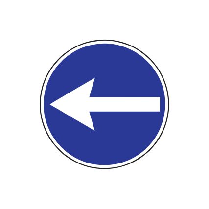 Rīkojuma zīme Nr.408/Braukt pa kreisi. Izmēri: d=600mm. 2. atstarošanas klase.
