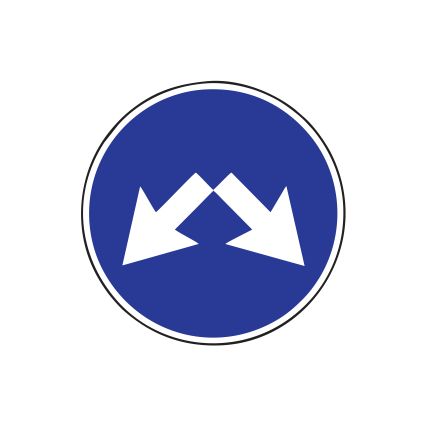Rīkojuma zīme Nr.412/Šķērsli apbraukt pa labo vai kreiso pus. Izmēri: d=700mm. 2. atstarošanas klase.